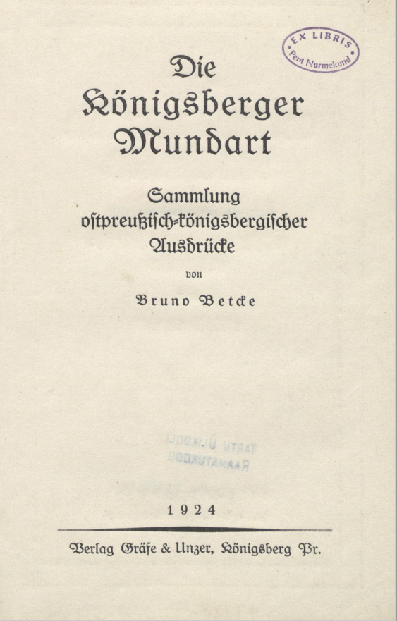 Mit diesen Worten beginnt der Autor Bruno Betcke seine Schrift über die sprachlichen Eigenarten der Ostpreußen, insbesondere der Königsberger.