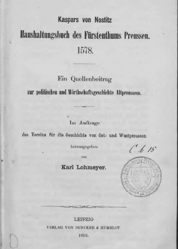 Kaspars von Nostitz Haushaltungsbuch des Fürstenthums Preussen. 1578