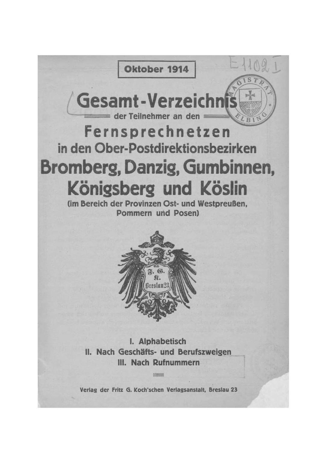 Ein annähernd 1.000-seitiges Telefonbuch aus dem Jahr 1914 mit allen (!) Teilnehmern aus den Fernsprechnetzen in den Oberpost-Direktionsbezirken Bromberg, Danzig, Gumbinnen, Königsberg und Köslin! Viele Tausend Familiennamen, Adressen, Firmen, Behörden und Berufsangaben aus der Zeit vor dem I. Weltkrieg können nun in dieser sorgfältig überarbeiteten PDF-Datei im Volltext durchsucht werden.